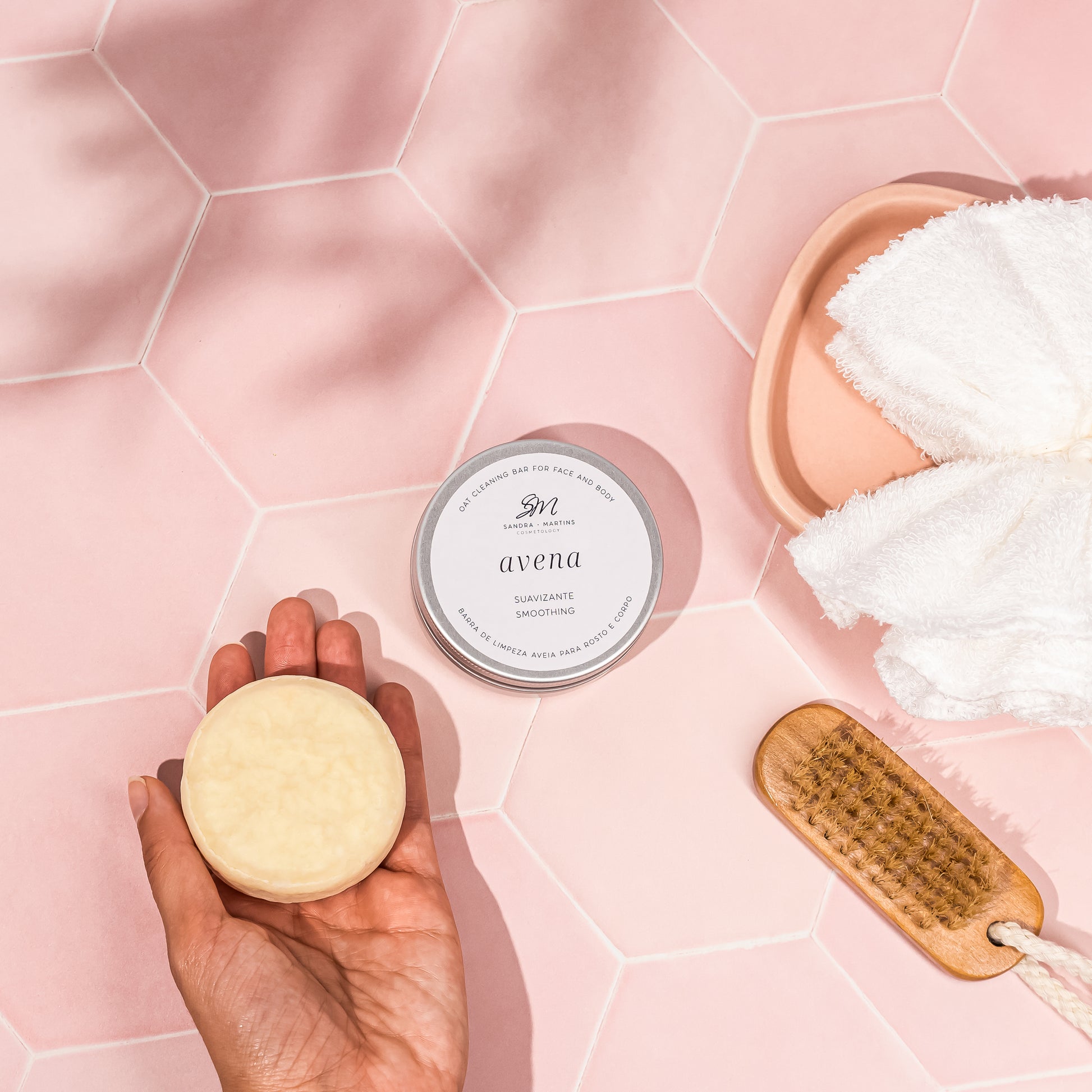 A barra de limpeza pode ser usada no segundo passo da rotina de dupla limpeza do rosto.