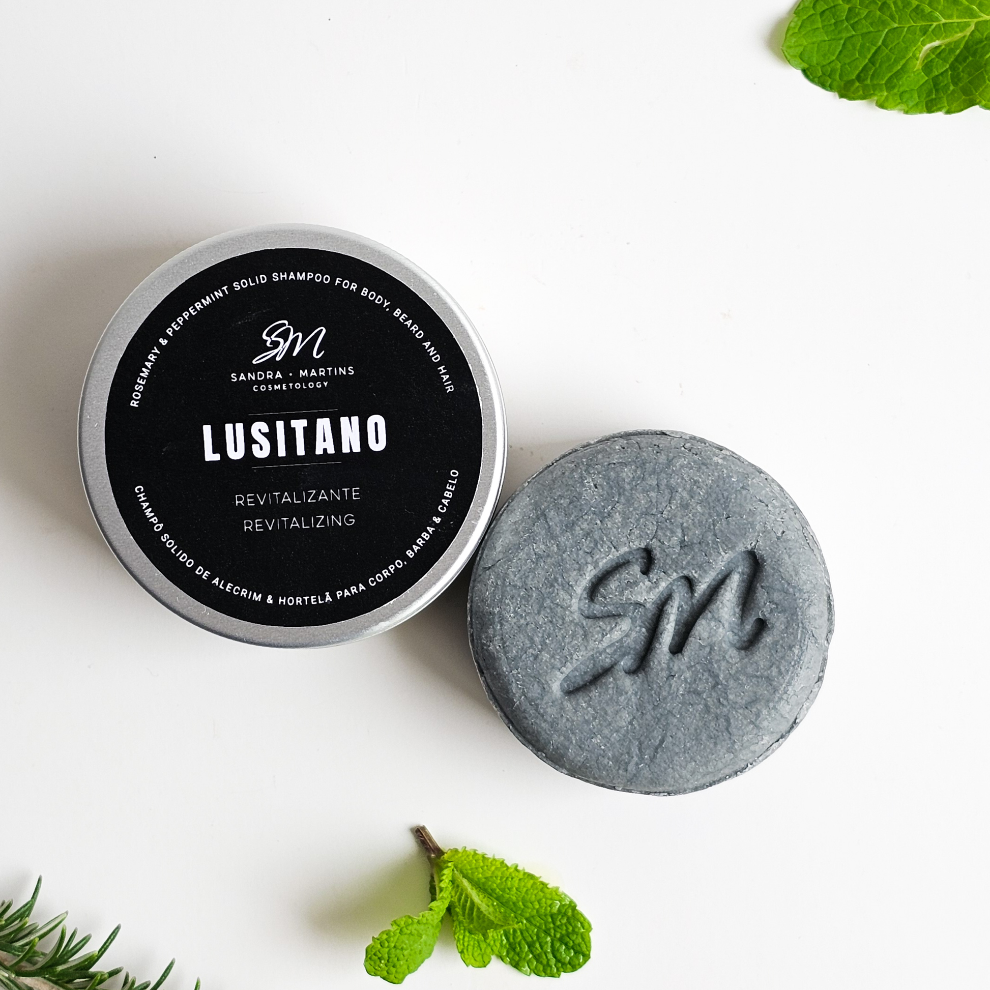 O champô sólido LUSITANO "3 em 1" Barba, Cabelo e Corpo foi formulado a pensar no cuidado suave, diário e purificador do cabelo, couro cabeludo e corpo.