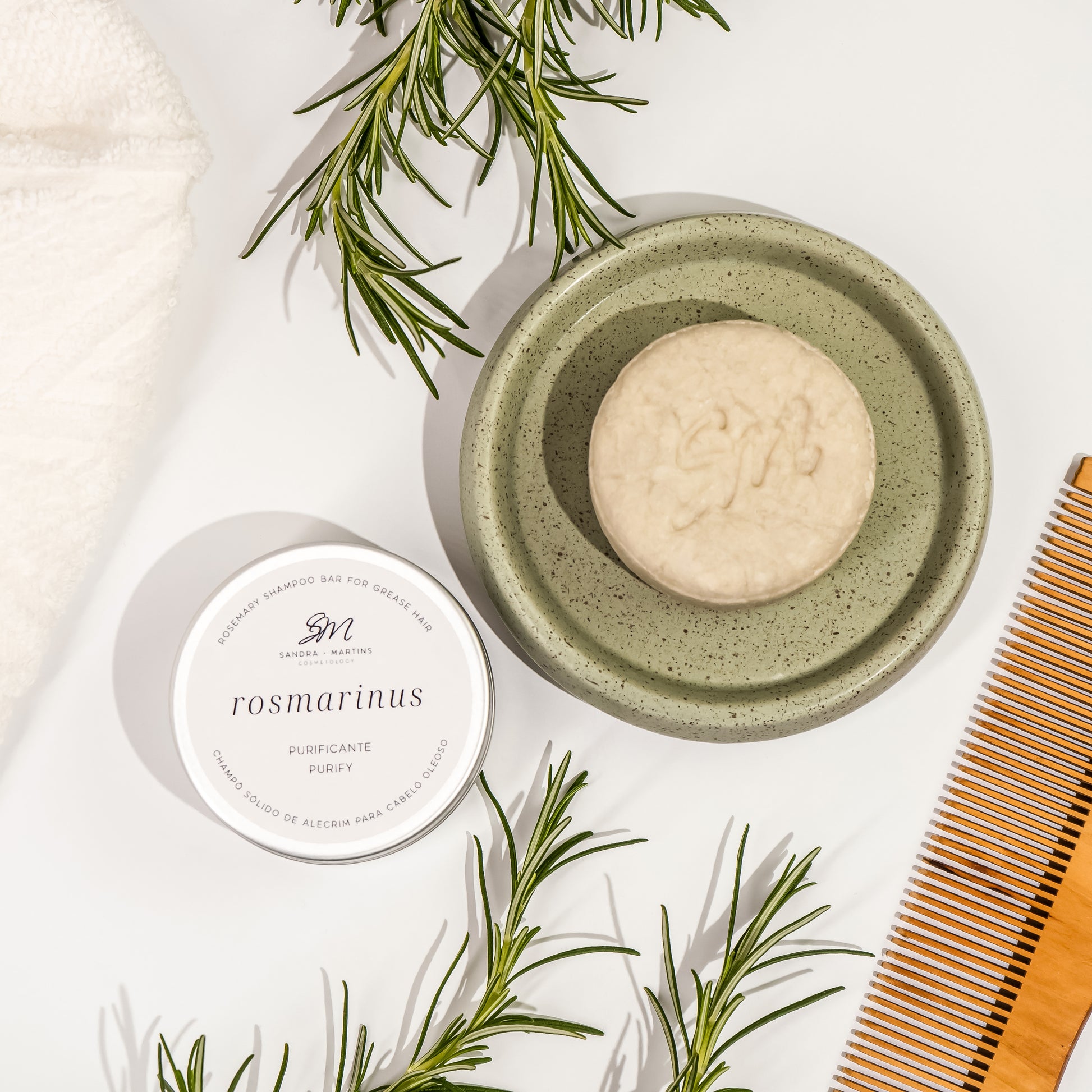 O champô sólido ROSMARINUS foi formulado a pensar no couro cabeludo com tendência a oleoso.
