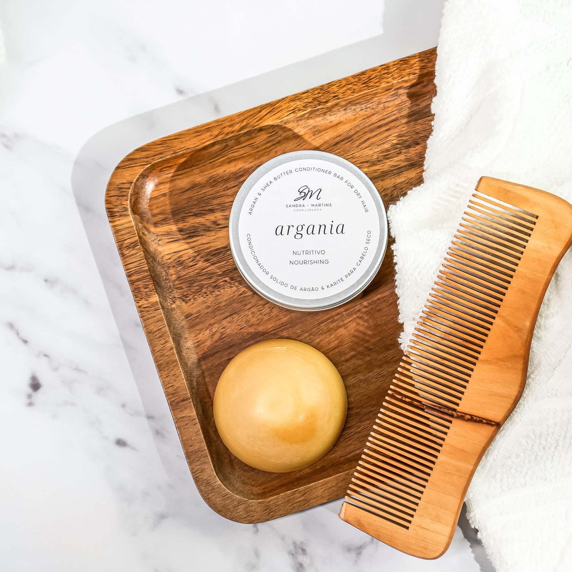 O condicionador sólido ARGANIA é uma versão melhorada do condicionador “Argão e Karité”.