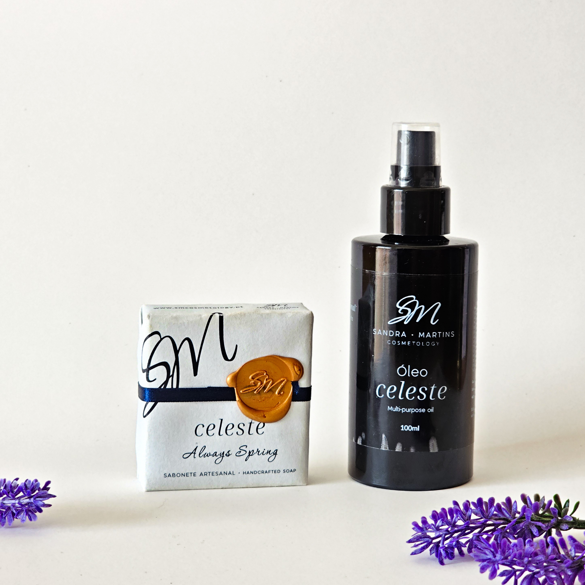 O óleo CELESTE, é um óleo multifuncional, facilmente absorvido pela pele, ligeiramente emulsionante, que limpa, suaviza, nutre e protege a pele e o cabelo.